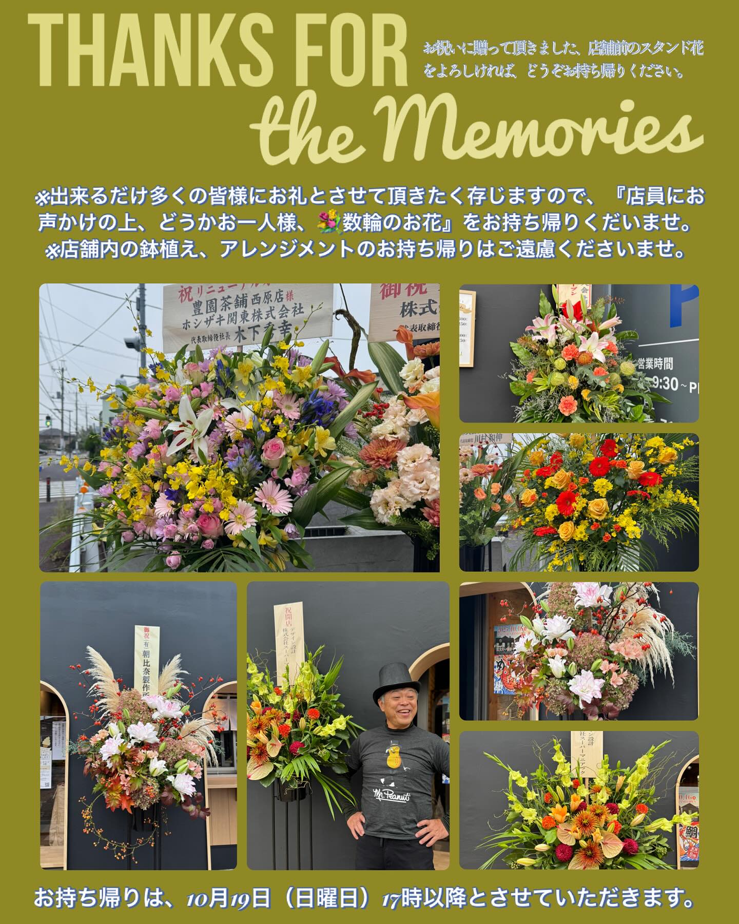 出来るだけ多くの皆様にお礼とさせて頂きたく存じますので、『店員にお声かけの上、どうかお一人様、💐数輪のお花』をお持ち帰りくだいませ。