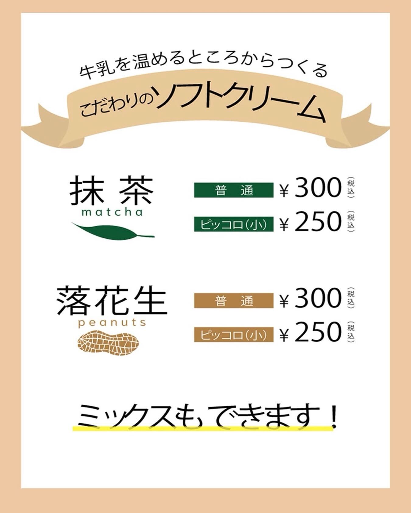 【お知らせ】今日からは『抹茶ソフトクリーム』『落花生ソフトクリーム』です。