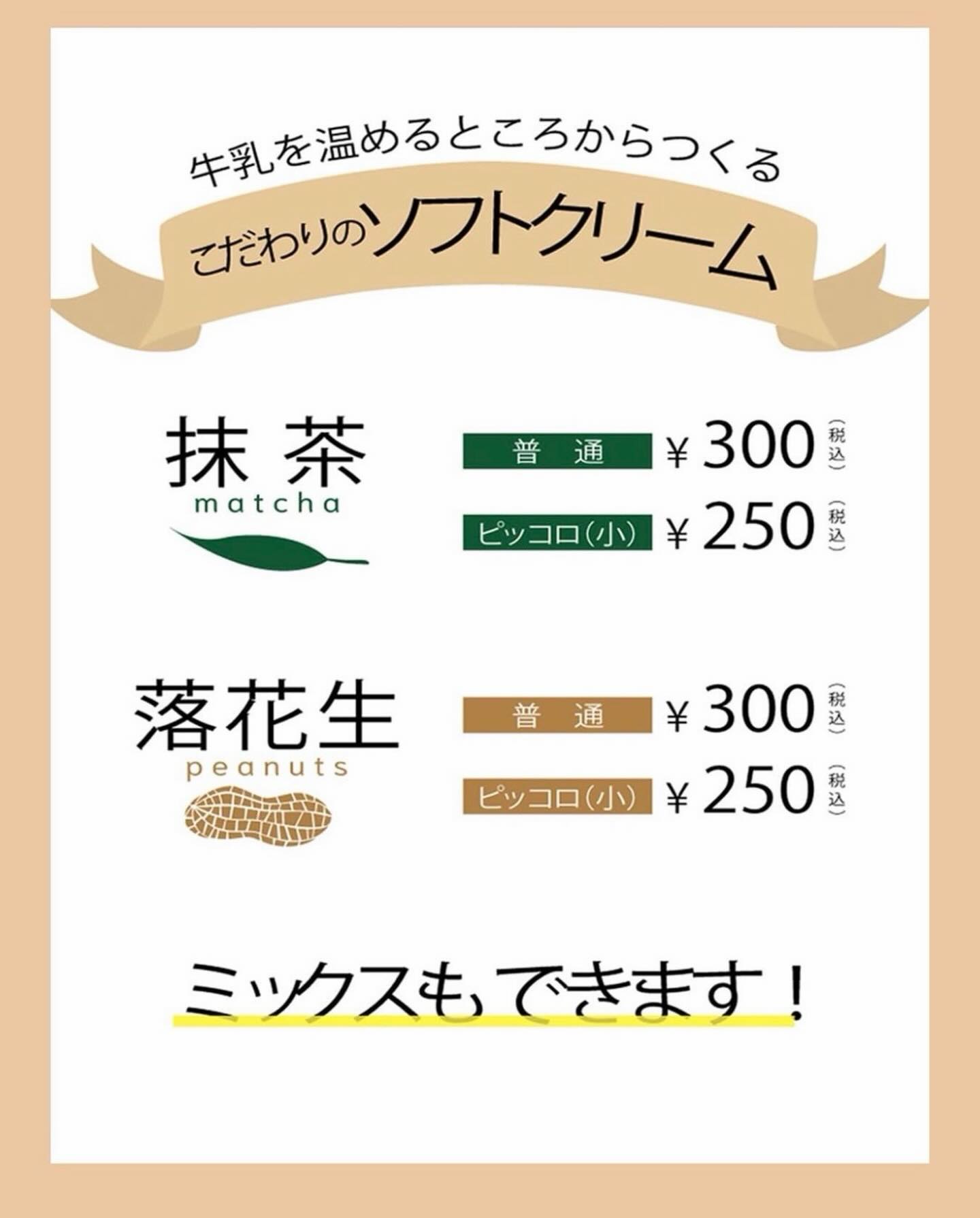 【お知らせ】今日から定番『抹茶ソフトクリーム』『落花生ソフトクリーム』です。
